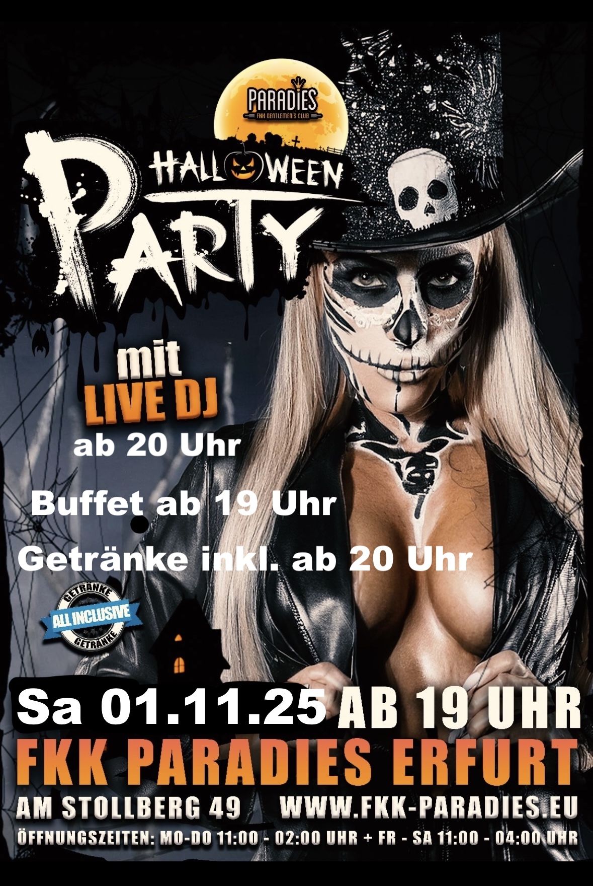 Am Samstag den 01.11.2025 möchten wir mit Euch unsere alljährliche Halloweenparty feiern. Ab 11 Uhr haben wir wie gewohnt für Euch geöffnet. Am Abend erwartet Euch ab 19 Uhr ein leckeres Buffet. Ab 20 Uhr gibt es dazu eine Auswahl an alkoholischen Getränken und unser Live DJ sorgt für Stimmung. Kommt vorbei, bringt gute Laune mit und lasst uns gemeinsam feiern. Wir freuen uns auf einen tollen Tag mit Euch.