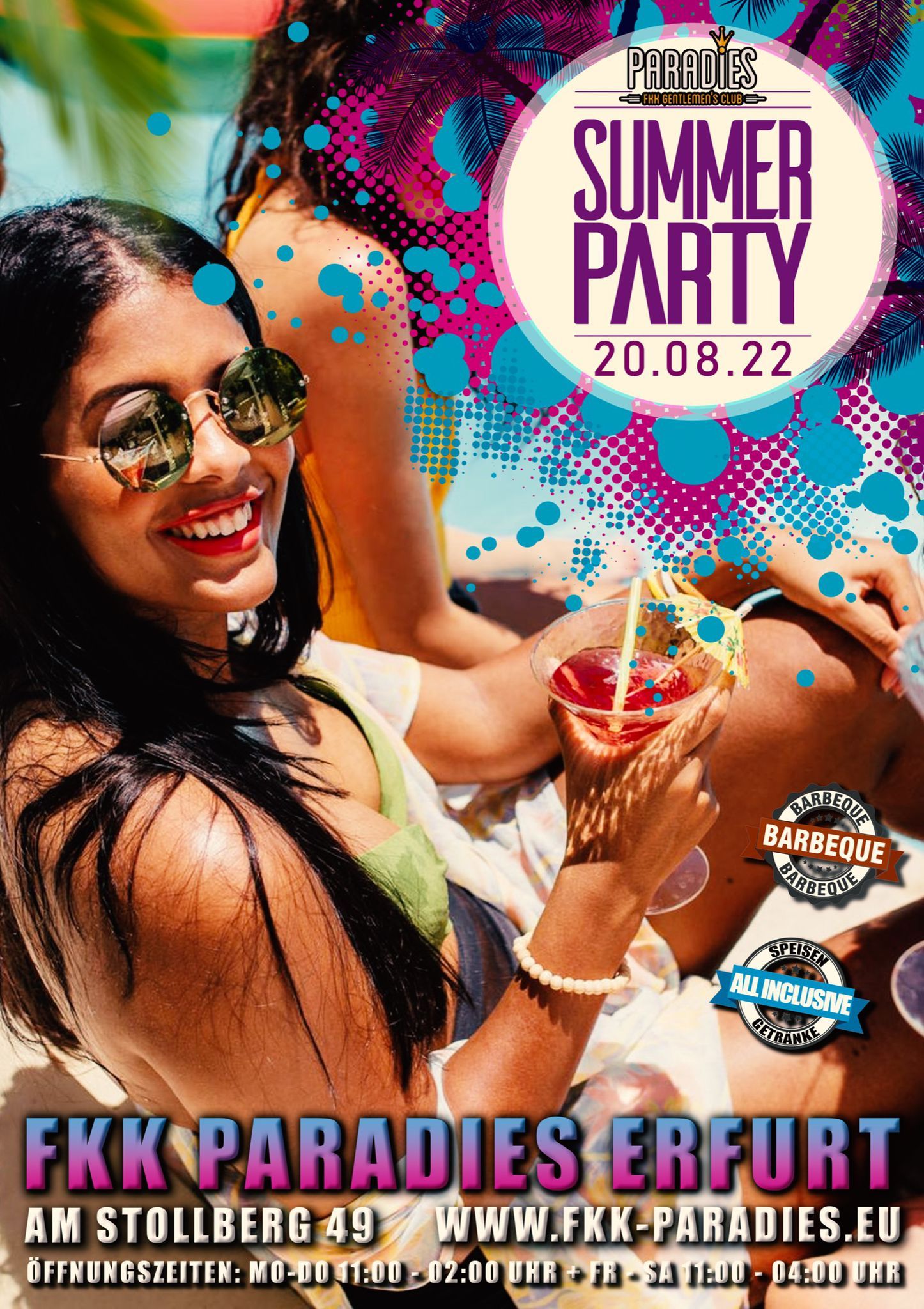Am Samstag den 20.08.2022 findet ab 20.00 Uhr unsere Summer Party statt. Das Barbecue, ein reichhaltiges Buffet und eine Auswahl an Getränken ist inklusive. Für musikalische Stimmung sorgt unser DJ und es erwartet euch ein aufgregendes Showprogramm.